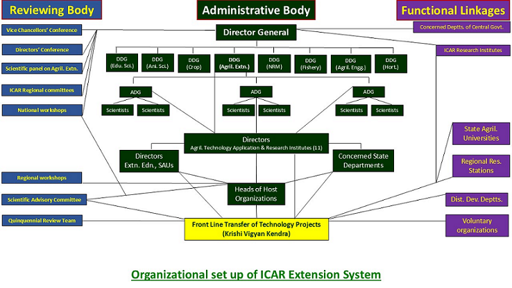 The Indian Council of Agricultural Research has established 11 Agricultural Technology Application Research Institutes (ATARIs) across the country for monitoring, reviewing and coordinating the KVK system. Agricultural Extension Division, one of the eight divisions of ICAR, New Delhi has established strong network of Krishi Vigyan Kendras (731 KVKs) all over the country. The division is headed by Deputy Director General (Agricultural Extension) and supported by two Assistant Directors Generals, four Principal/Senior Scientists, two Directors and one Under Secretary monitor and review the progress of KVKs through ATARIs. Earlier, there were eight ATARIs (Ludhiana, Kolkata, Barapani, Kanpur, Hyderabad, Jodhpur, Jabalpur and Bengaluru). Considering more number of KVKs and intricate monitoring/coordination mechanism, three additional ATARIs (Pune, Guwahati and Patna) were established in 2015 for effective monitoring, coordinating and reviewing the KVKs and started functioning from 2017. If you look in the history of ATARI, it was born as Zonal Coordination Unit in 1979 at 8 locations to monitor transfer of technology projects. The Zonal Coordination Unit was upgraded as Zonal Project Directorate (ZPD) in 2009. Again, it was upgraded as Agricultural Technology Application Research Institute (ATARI) in 2015.